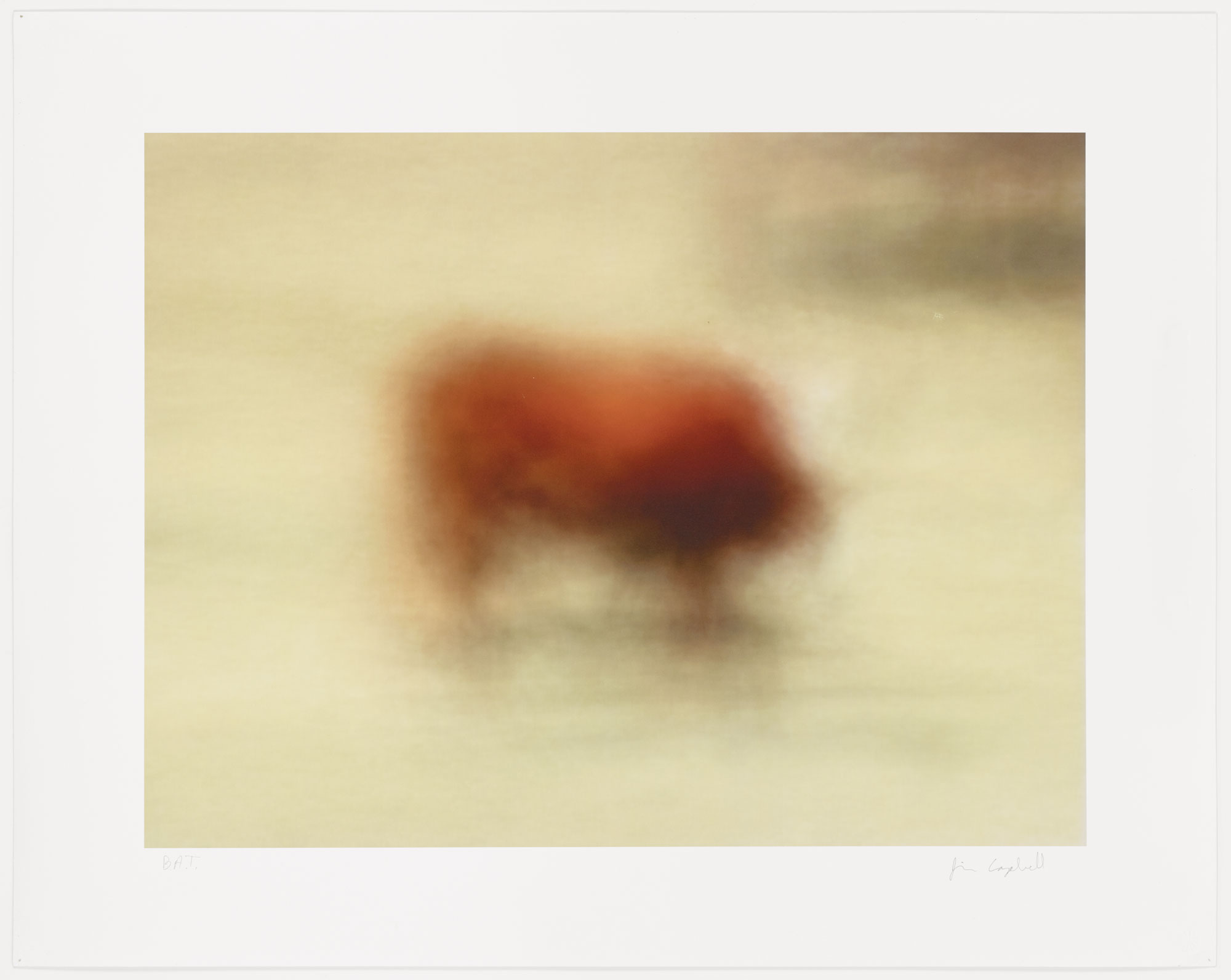 Dynamism is a suite of four digital inkjet prints. The artist videotaped movement (his motion) of each object for a specific period of time, then used custom hardware to average the multiple frames into one single image. The result is a blurring effect that gives the appearance of motion. For Dynamism of an Automobile (after Luigi Russolo) the artist averaged two minutes of video taken traveling down the freeway, Dynamism of a Cyclist (after Umberto Boccioni) was averaged over two minutes and thirty seconds, Dynamism of a Cow was averaged over three minutes and Dynamism of an Observer in the Weeds was averaged over 93 minutes. The images were printed with archival inks on cotton rag paper made specifically for Epson inks.